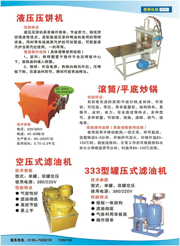 針對(duì)小型榨油廠等用戶,適合冷榨、熱榨等菜籽油和花生油等毛油的澄清過(guò)濾,濾出的油脂達(dá)到不起沫,少油煙,無(wú)沉淀物。可連續(xù)加工大量油脂。氣壓式濾油機(jī)是通過(guò)空氣正壓方式濾油,使毛油通過(guò)多層高密度濾油布進(jìn)行精濾,從而實(shí)現(xiàn)毛油的油、渣分離,過(guò)濾后的油質(zhì)更加清澈。精濾后可過(guò)濾出油渣里的大量殘油,過(guò)濾后的油渣為干餅狀,油餅的帶油率極低,從而提高了出油率。