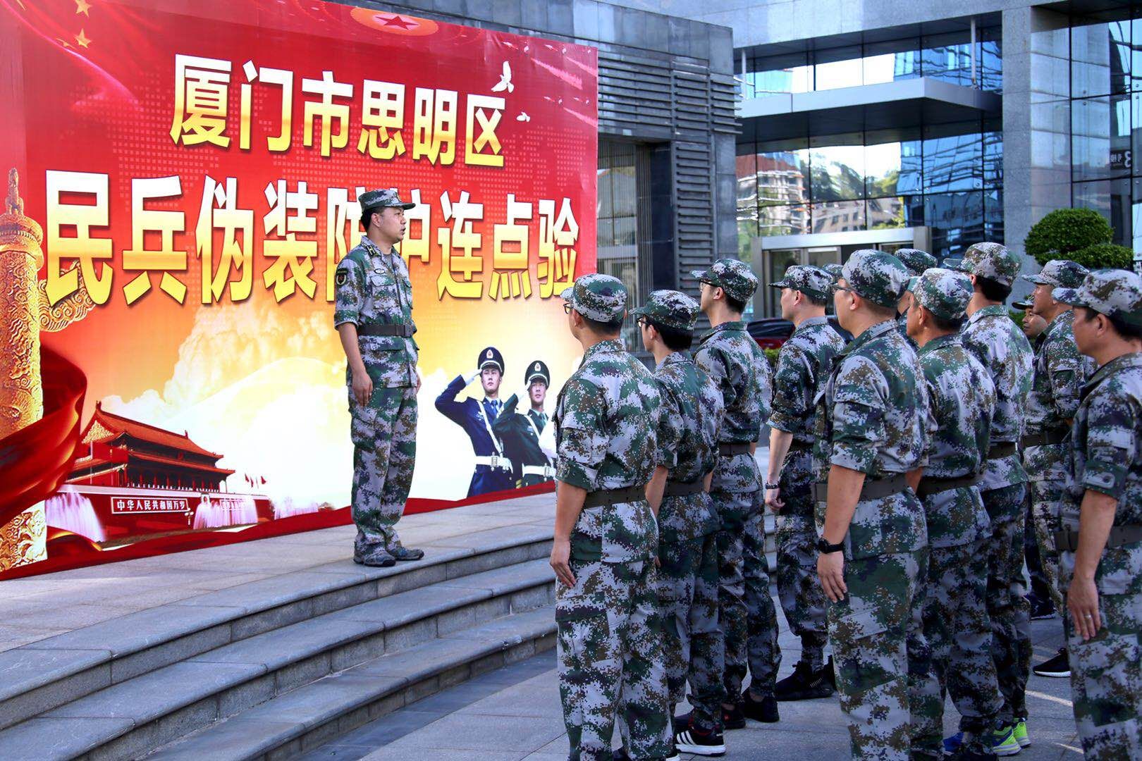 8月13日下午,思明區(qū)人民武裝部會同警備區(qū)抽點民兵專業(yè)分隊,對其進行實地集結(jié)點驗。由廈門建安集團編組的基干民兵專業(yè)分隊——偽裝防護連身著迷彩服,士氣高昂,軍容嚴整,以飽滿的精神狀態(tài)接受點驗。